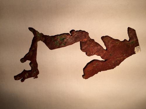 Copper<br />Lake Superior copper district, Keweenaw County, Michigan, USA<br />170 mm x 75 mm x 3 mm<br /> (Author: Robert Seitz)