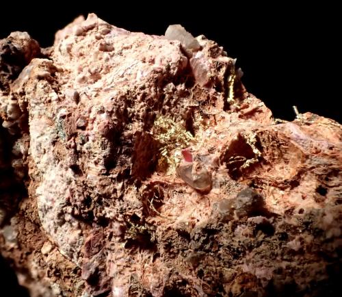 Gold (variety electrum), Erythrite, Quartz