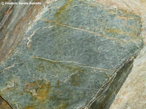 Compuesto por fenocristales de cuarzo inmersos en una matriz de cuarzo, plagioclasa, clorita y moscovita.