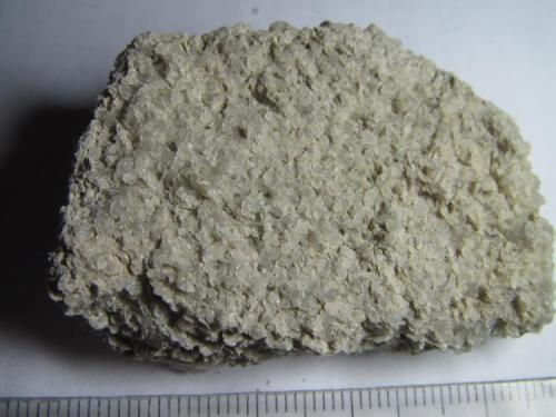 Cristales granulares de tamaño milimétrico en una matriz blanca del mismo material y carbonatos (ligera efervescencia con el HCl). (Autor: prcantos)