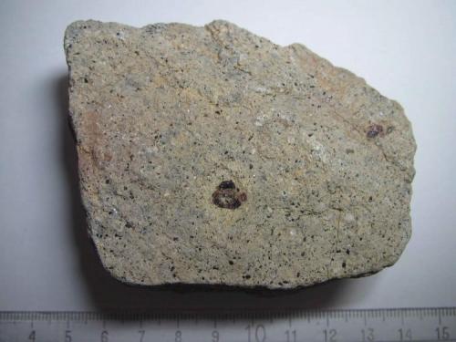 En su ascenso a la superficie por la falla de Carboneras, el magma calcoalcalino potásico arrancó los granates de los esquistos o gneises del basamento, y quedaron incorporados a la roca como xenolitos. (Autor: prcantos)