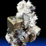 53mm x 52mm x 40mm. Main rhodonite crystal: 10mm t (Author: Carles Millan)Rhodonite, quartz, sphalerite, pyrite